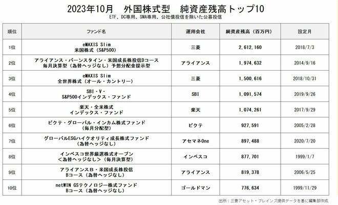 外国株式型の純資産残高1位は「eMAXIS Slim 米国株式(S&P500)」(2兆6121.6億円)