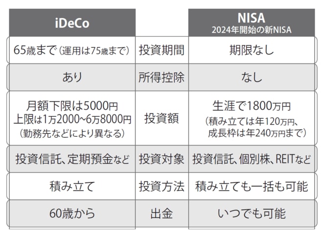 第一のポイントは、運用できる期間です。iDeCoは資金を積み立てられるのが最長65歳まで、新規の資金を入れずに運用を続けられるのは75歳までというリミットがあるのに対し、NISAにはこうした制限がありません。