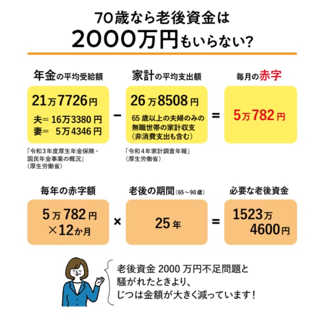 以前、老後資金2000万円不足問題が話題になりましたが、この額は調査から算出した平均値。各家庭の支出状況で「必要な貯蓄額」は異なるので、気にしすぎないことが大切です。