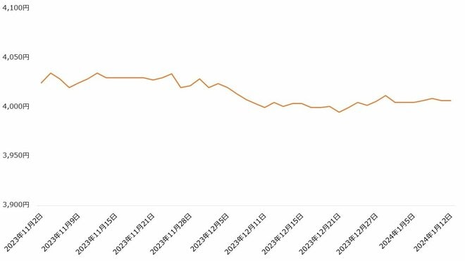 【ソフトバンク社債型株式の株価(日足終値、2023年11月2日~2024年1月12日)】