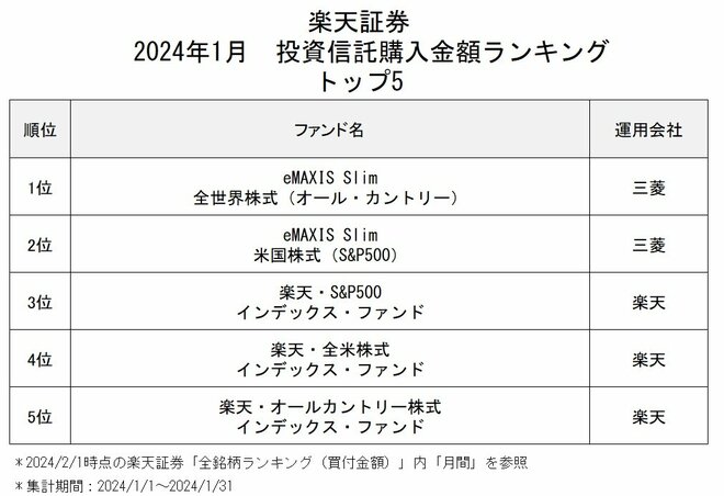 2024年1月も、SBI証券と楽天証券ではS&P500種株価指数を対象にしたインデックスファンドの人気が高かった。そして、1月19日にS&P500種株価指数は約2年ぶりに史上最高値を更新した。エヌビディアなどのAI関連銘柄とハイテク銘柄の上昇、そして台湾積体電路製造(TSMC)の強気の業績見通しにより、テック株への楽観論が強まったからである。S&P500種株価指数は19日に前日比1%高の4839.81 で引け、2022年1月3日の史上最高値(4796.56)を更新している。