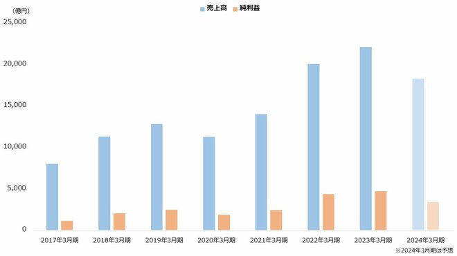 【東京エレクトロンの業績の推移(2017年3月期~2024年3月期)】