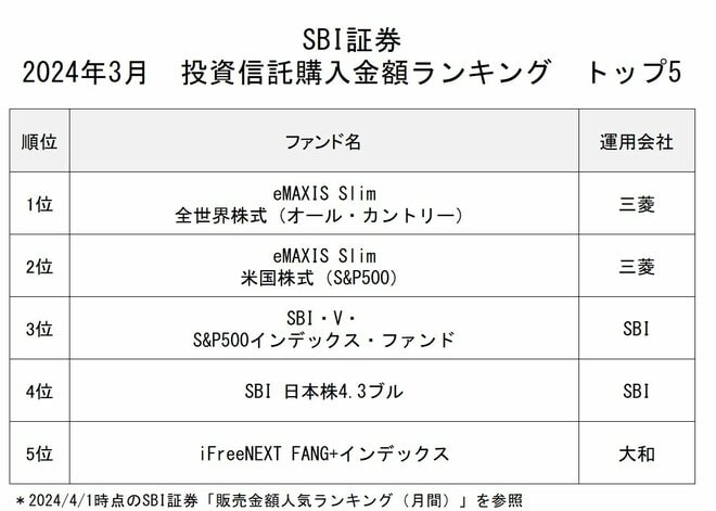 3月も、SBI証券や楽天証券では「eMAXIS Slim 全世界株式(オール・カントリー)」の人気が高かった。たしかに、同ファンドへの投資は、世界経済の成長力を活用し、長期的に資産を増やす機会を提供するものである。