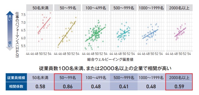 図3:ウェルビーイングと仕事のパフォーマンスの相関〈企業規模別〉