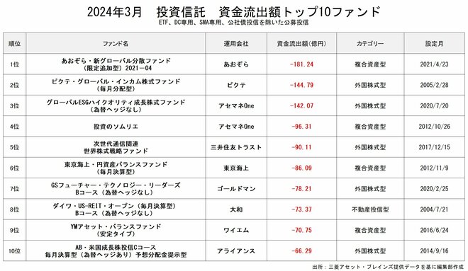 「ピクテ・グローバル・インカム株式ファンド(毎月分配型)」からの資金流出が続く