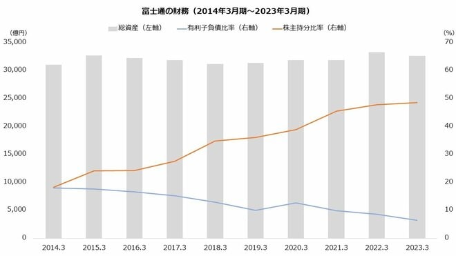 一方で収益性は向上しています。営業利益は増加傾向にあり、2023年3月期は過去最高を更新しました。営業利益率は9.0%に達し、2014年3月期(同3.1%)から5.9%ポイント上昇しています。