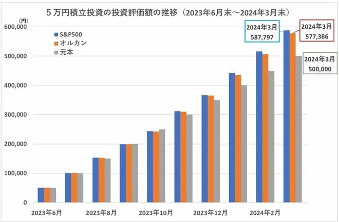 2人の計画は、毎月それぞれ5万円を新NISAで積立投資を行うというものだった。小山は米国株価指数「S&P500」に連動するインデックスファンドを、沙織は全世界株式インデックス(MSCI ACWI)に連動するインデックスファンドを積立投資すると決めた。それぞれが30年間の積立投資を完走できれば、NISAの非課税限度額である投資元本1800万円に到達する。仮に、「S&P500」が過去5年の年間平均リターン22%が30年間継続したと仮定すると、小山の30年後の資産は収益非課税の下では元利金合計で11億8600万円になる計算だ。また、沙織の投資する「オルカン」の過去5年の平均年率リターン18%で計算しても30年後の元利合計は5億2000万円だ。さすがに、この5年のような相場が今後も続くとは考えにくいが、年率8%で運用できたとしても、2人で合計1億4000万円の資産ができる計算になる。30年後でも2人とも70歳にはなっていないため、十分な資産を手に入れて豊かな老後が実現できる。「30代から毎月10万円を積立投資ができるのは、まったくDINKS(ダブル・インカム・ノー・キッズ)の特権。将来の富裕層の誕生だ!」と小山は目を輝かせて言った。そして、30年間、投資を継続することが大事だと何度も確認し合った。