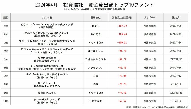 4月の資金流出額1位は「ピクテ・グローバル・インカム株式ファンド(毎月分配型)」(-157.72億円)