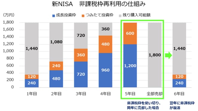ではここで、新NISAの非課税枠の「再利用」について触れておこう。