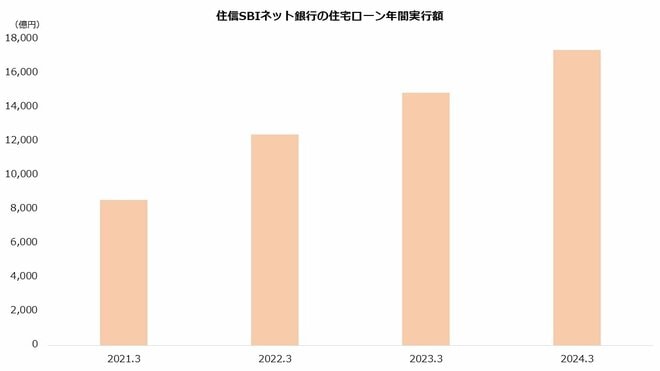 業績をけん引したのは住宅ローンです。年間実行額は1兆7386億円に上りました。前期(1兆4852億円)から17%増加した計算です。直近3期では2倍に増えました。