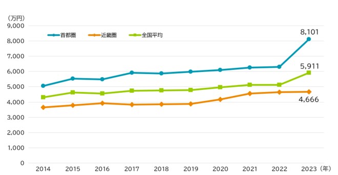 (出所)株式会社不動産経済研究所「全国 新築分譲マンション市場動向 2023年」より三井住友トラスト・資産のミライ研究所作成