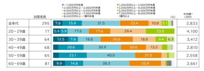 *中央値は、50%部分が含まれる選択肢から概算値を算出。なお、解答は各選択肢内で均等に分布していることを前提とした。万円未満四捨五入。