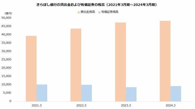 直近の2024年3月期も、資金利益を中心に粗利益が増加しました。資金利益は主に貸出金利息がけん引し、有価証券利息はほぼ横ばいとなっています。きらぼし銀行は有価証券の残高が停滞していますが、貸出金は順調に積み増しており、収益の改善につながったと考えられます。