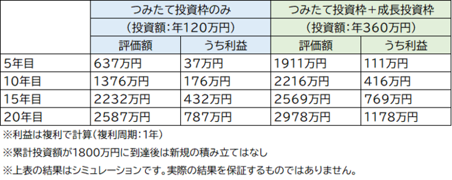 ただし、つみたて投資枠のみで1800万円を投資する場合、最短でも15年かかります。つみたて投資枠は年間で120万円までしか投資できないからです。しかし、年間240万円まで投資できる成長投資枠も併用すれば、最短5年で1800万円を投資できます。