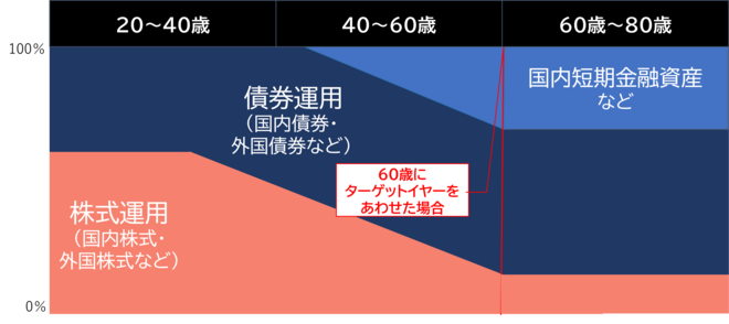 <60歳を目標達成年としたターゲットイヤーファンドの運用イメージ>