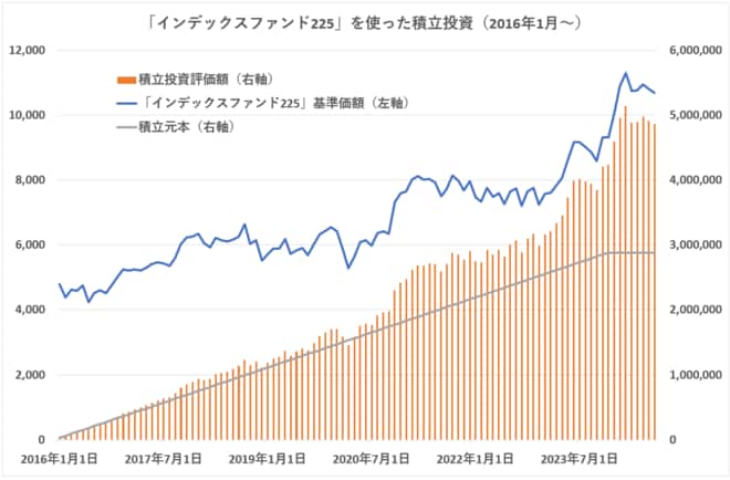 小野田は、『親の務め』として悠人に十分な教育を受けさせたいと考え、子どものために資産形成する「ジュニアNISA」が始まった2016年1月から悠人のために毎月3万円を日経平均株価に連動するインデックスファンドに積立投資していた。非課税期間の5年間が経過した後、引き続き非課税口座を使うロールオーバーをして、「ジュニアNISA」が使用可能な2023年12月まで合計288万円を積み立てた。その間に株価が上昇したおかげで、2023年12月末時点の評価額は約423万円になっていた。