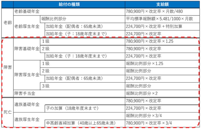 前述したように、30代はライフイベントが多くあるため、生命保険等の加入を検討する人が多いと思いますので、公的年金の障害年金と遺族年金について詳しく解説していきます。