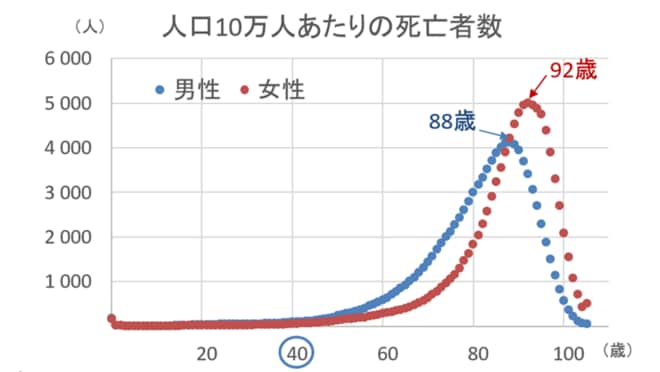 40歳の平均余命(40歳の人があと何年生きるかの平均年数)は、男性42年、女性47年です(厚生労働省「令和5年簡易生命表」)。また、統計上の死亡者の最頻値は男性88歳、女性は92歳なので40代はまさに人生の折り返し地点になります。このような機会には、今までの人生を振り返りつつ、今後の人生をじっくり考えることが重要です。