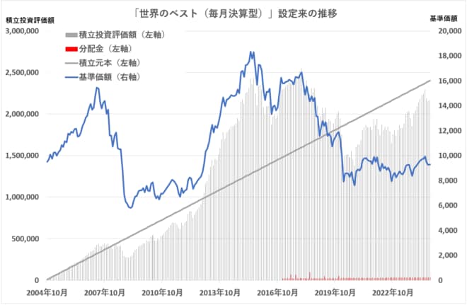 結果:20年前に100万円を「世界のベスト(毎月決算型)」に投資していたら