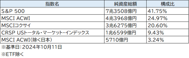 【インデックス型ファンドの純資産総額 上位10銘柄の参照指数】