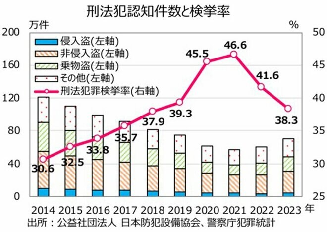 神様:日本の治安を考えるには、2つの見方があります。一つは、刑法犯認知件数や検挙率による客観的なデータです。警察庁によると、2023年の刑法犯認知件数は70万3,351件となり、2022年と比べて大きく増加しました。