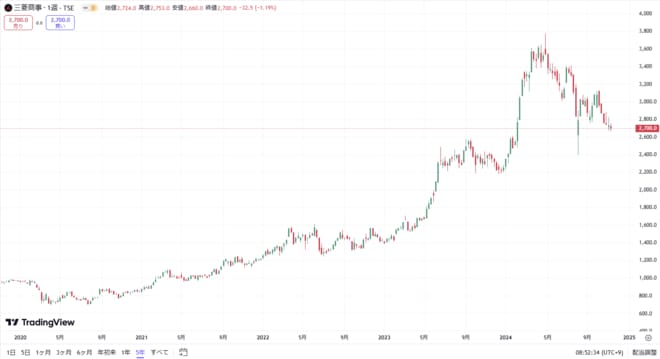 もっとも、中長期的には大きく値上がりしています。2024年11月15日までの5年間で株価は2.8倍に上昇しました。足元の配当利回りは3.7%と、比較的高い利回りも魅力的です。2024年8月には、市場評価性(PBR基準)の高さから「JPXプライム150指数」にも採用されました。短期的には下落していますが、投資家の人気は依然、高そうです。