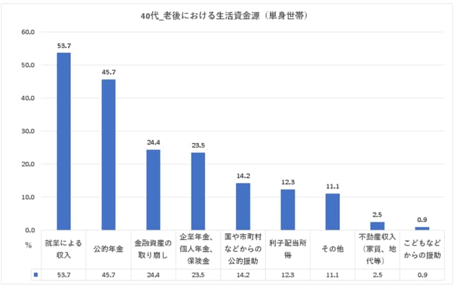 40代単身者で公的年金を抑えて1位だった生活資金源