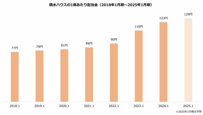 積水ハウスは2024年1月期までに12期連続で配当金の増額(増配)を達成しています。計画どおりなら、増配の連続記録は今期で13期に達する見込みです。海外を中心に積極的な投資を実施する同社ですが、株主還元にも資金を振り向け、投資家の期待を集めます。