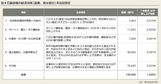 しかし発足直後から、石破政権の政策は財政拡張に偏っている印象を受けます(図)。例えば住民税非課税世帯への給付や電力・ガス補助金といった物価高対策には重複感が否めず、十分に精査されないまま財政状況を悪化させてしまう懸念があります。またこうした給付金や補助金、そして減税の効果は一時的なものにとどまるため、本質的な日本経済の改善につながらないことも問題です。