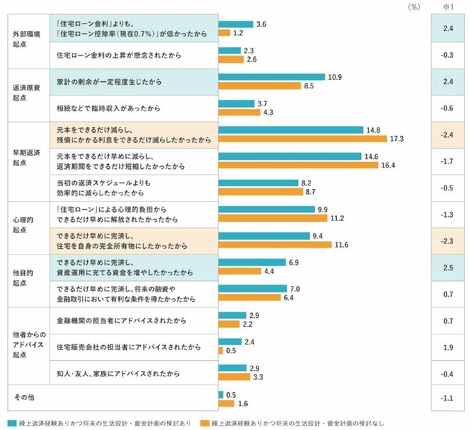 実際に、「繰上返済経験あり×将来の生活設計・資金計画あり」の人と「繰上返済経験あり×将来の生活設計・資金計画なし」の人の繰上返済理由を確認したところ、差がありました【図表3】。