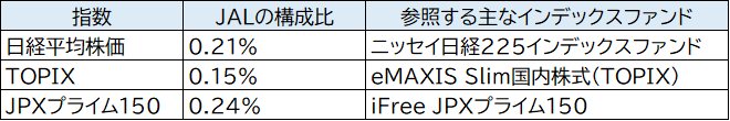 またJALは国内の主要な株式指数に採用されています。その指数を参照するインデックスファンドを購入すれば、資金の一部はJALへ向かうこととなります。