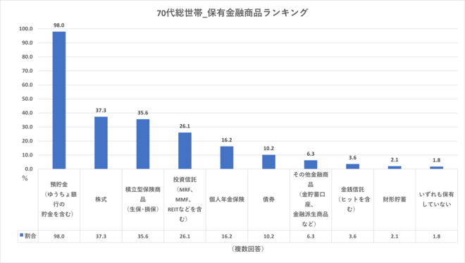 70代保有金融商品ランキング(総世帯)
