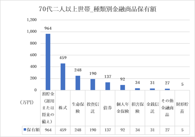 70代の金融商品(種類別)保有額ランキング(二人以上世帯)