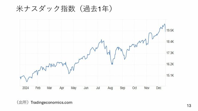 株ですが、先ほど金利上昇で株が下がったということですけれども、NASDAQの過去1年を見ると、年間通しては上がっているのですが、右側の方で少し大きく株が下がっています。