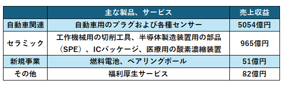 主力製品は自動車向けのプラグおよび排気センサーです。世界シェアはいずれもトップクラスです。2023年7月には、デンソーからの同事業の譲り受けに向け、検討を開始することに基本合意しました。実現すればシェアはさらに拡大するとみられます。