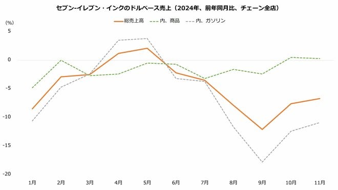減益は全てのセグメントで生じました。特に海外コンビニエンスストアの苦戦が顕著で、営業利益は同32.1%減、のれん償却前でも同19.2%減と、全セグメントで最も悪化しました。アメリカで販売が振るわず、大幅な減益となっています。