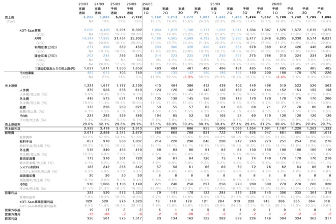 しかし同社は直近決算説明資料で、「2025年度下期以降で2割程度増加としていた課金ID数については見直し中」と言及し、当初想定していた課金ID数成長率を下方修正する可能性を示唆している。登録ベース移行による課金ID数増加に伴い価格交渉は発生するものの、同社は業界最安値(月額300円/ID)でサービスを提供しているため、単価維持は可能と見られる。また値上げも予定されていないことから1課金ID数当たりの売上高は現在の水準で維持されると予想した。課金ID数の前四半期比(QoQ)成長率は登録ベースへの全面移行により、2026年第1四半期において大幅増を予測し、10%増と置いた。