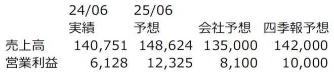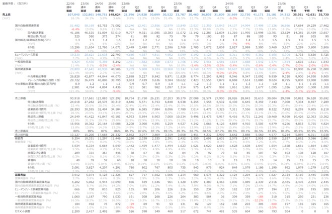 2025年6月期第1四半期の売上高は343億円と期初予想の342億円とほぼ同水準で推移した一方、営業利益は27億円と期初予想の16億円を大きく上回る結果となった。この収益性の大幅な改善は、新車・中古車の輸送料金改定や送迎事業における価格見直しによる増収効果が、人件費や燃料費などの固定費の抑制と相まって、売上原価率の改善と販管費率の低減につながったことが主要因である。こうした価格改定を通じた収益構造の強化が、利益率の向上に寄与している。