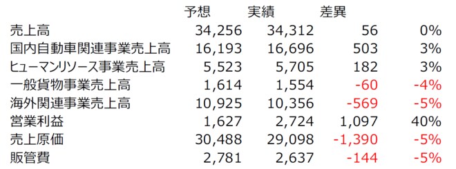 国内自動車関連事業については、トラックドライバーの時間外労働時間に上限規制がかけられる「2024年問題」への対応として乗務員の分業体制推進や採用強化により輸送戦力を維持し、受託台数は増加。また、2024年1月からの輸送料金改定の浸透や、子会社であるゼロ・プラスIKEDAの好調な業績寄与、同じく子会社化したソウイングの連結効果により、大幅な増収増益となった。