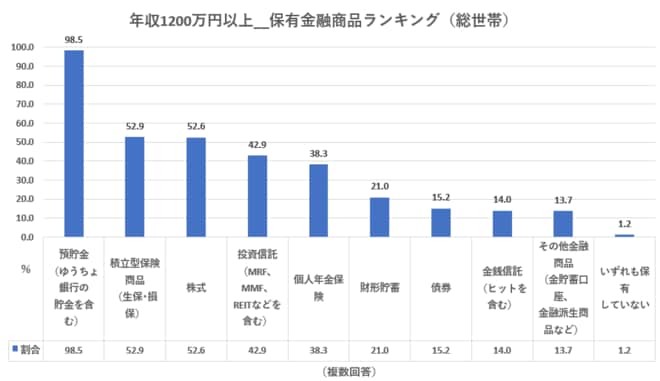 年収1200万円以上の保有金融商品ランキング(総世帯)