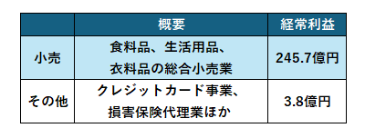 小売事業以外では、クレジットカード事業なども手掛けます。もっとも、利益のほとんどは小売事業から得ています。小売事業の売上高構成は生鮮食品が43.5%、一般食品が44.8%、生活関連用品が8.7%、衣料品が3.0%です(2024年2月期)。