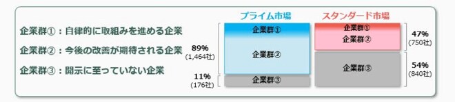 「開示済」としている企業の中でも、自律的に取組みをブラッシュアップしている企業とそうでない企業があることや、投資者の目線とズレた取組みとなっている企業があること等が指摘されており、その取組みの実効性には差が出ているようです。