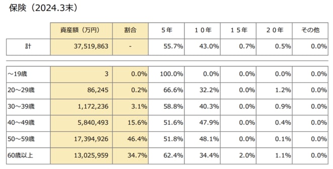 なお、iDeCoで選ばれている保険の内訳を見ると、全年代で共通して最も選択されている商品は5年物の保険でした。次いで10年物となっています。