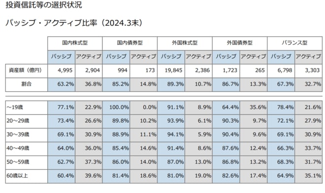 それぞれパッシブ型、アクティブ型の選択状況はどうなっているのでしょうか。