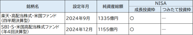 両ファンドはNISAの対象商品です。いずれも成長投資枠で購入できます。つみたて投資枠では購入できません。