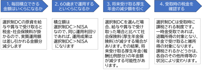 選択制確定拠出年金とNISAを「4つのポイント」で比較