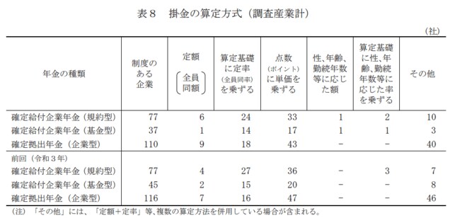 退職年金では、会社から拠出される掛金を積み立てて定年後に受け取るが、その掛金の算定方法も社によって異なる。退職年金の種類別に、主にどの方法が多いのかについて見ていこう。