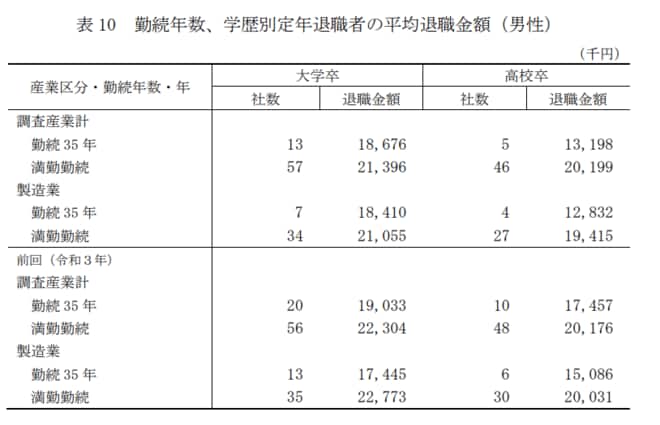調査では勤続年数が長い場合の平均退職金額を学歴別でも公表している。結果は大卒勤続35年で1867万6000円、満勤勤続(※)で2139万6000円。