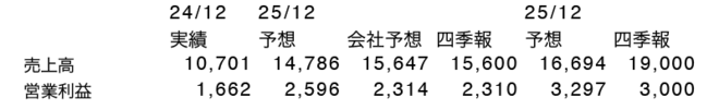 以上の予想と会社予想、四季報予想、コンセンサスとの比較は上記の通り。われわれの予想では2025年12月期の予想は売上高は会社予想、四季報予想を下回るが、営業利益はそれらを上回るやや強気な予想となった。