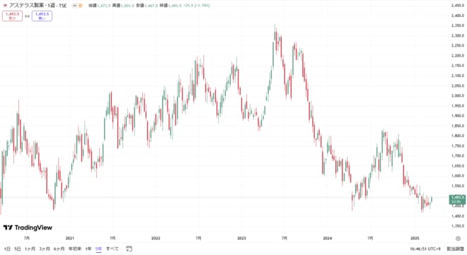 【アステラス製薬の株価チャート(過去5年間)】